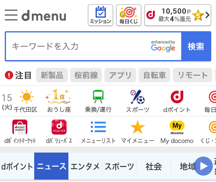 ドコモのdメニュー